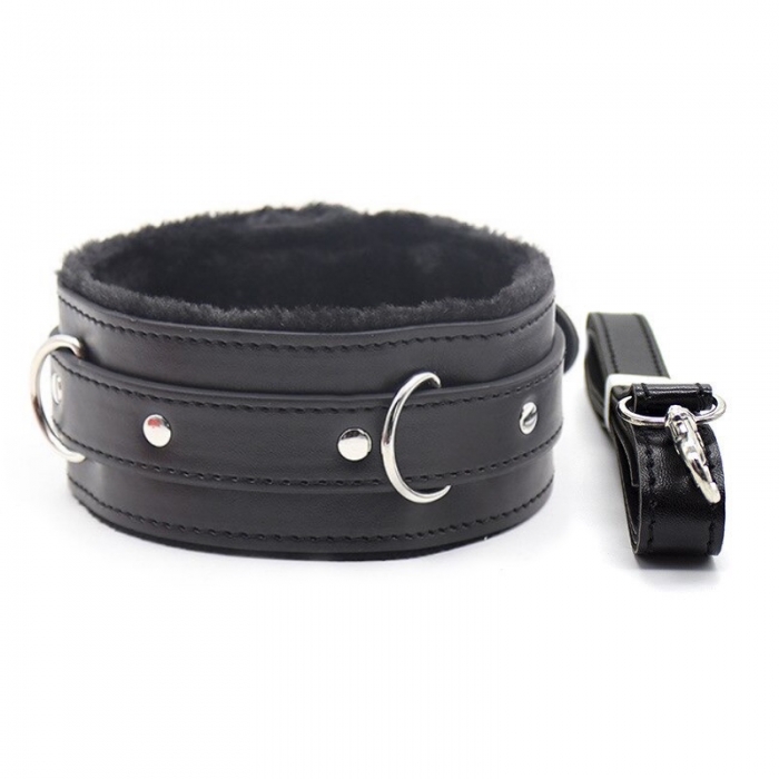 Черный мягкий ошейник с мехом и поводком в Минске с доставкой по Беларуси