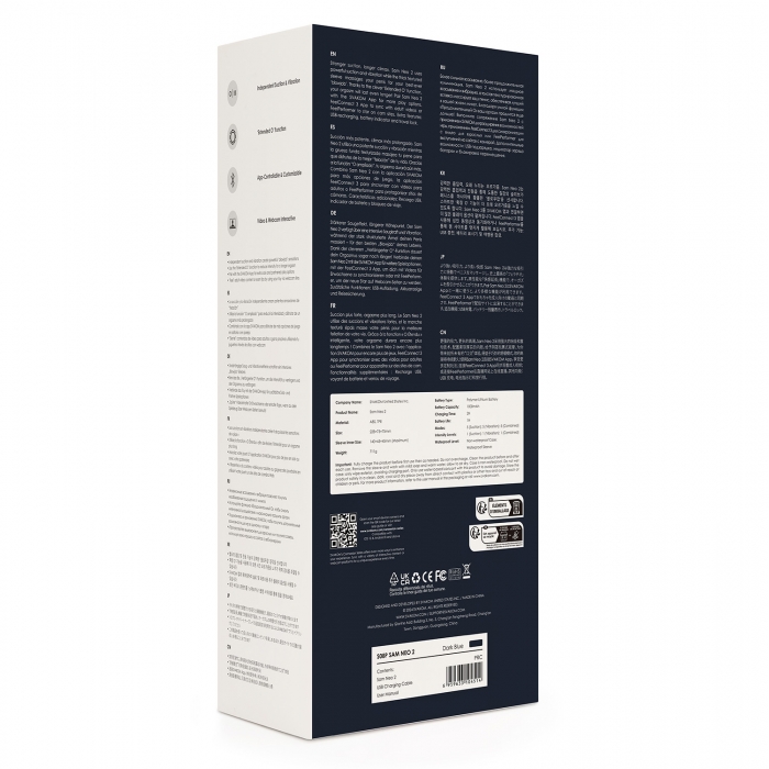 Второе поколение уже полюбившейся игрушки порадует вас более сильным всасыванием, чем у Sam Neo, а режим «Extended O» разработан специально для продления оргазма. Режим «Extended O» по нажатию кнопки "О" быстро снижает комбинированную вибрацию и всасывание до самой низкой интенсивности. Этот режим можно использовать для поощрения более продолжительного оргазма или задержки эякуляции, поскольку вы наслаждаетесь более мягкой стимуляцией и постепенным окончанием. В режиме «Extended O» индикатор "S" становится зеленым. Дважды нажмите "S", чтобы включить/выключить этот режим.