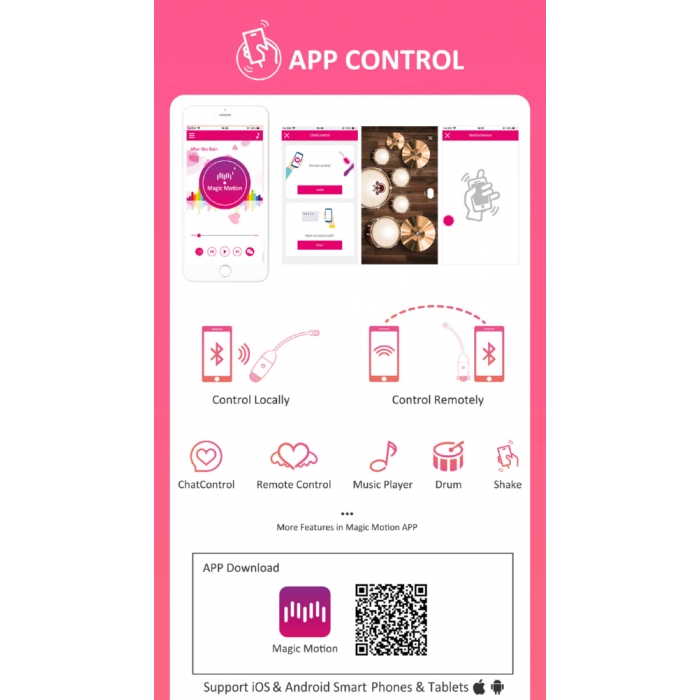 Расстояния больше не существует: Magic Vini позволяет заниматься любовной игрой вне зависимости от того, как близко Вы и Ваш любимый мужчина! Для этого и создано уникальное приложение от Magic Motion. Оно позволяет получить доступ к игрушке (с разрешения пользователя) и управлять ею с любого уголка планеты. Используйте игрушку дома, экспериментируя соло или вместе с любимым; на улице, получая удовольствие незаметно от посторонних глаз; на работе, романтичном свидании, прогулке, в длительной поездке без второй половинки.